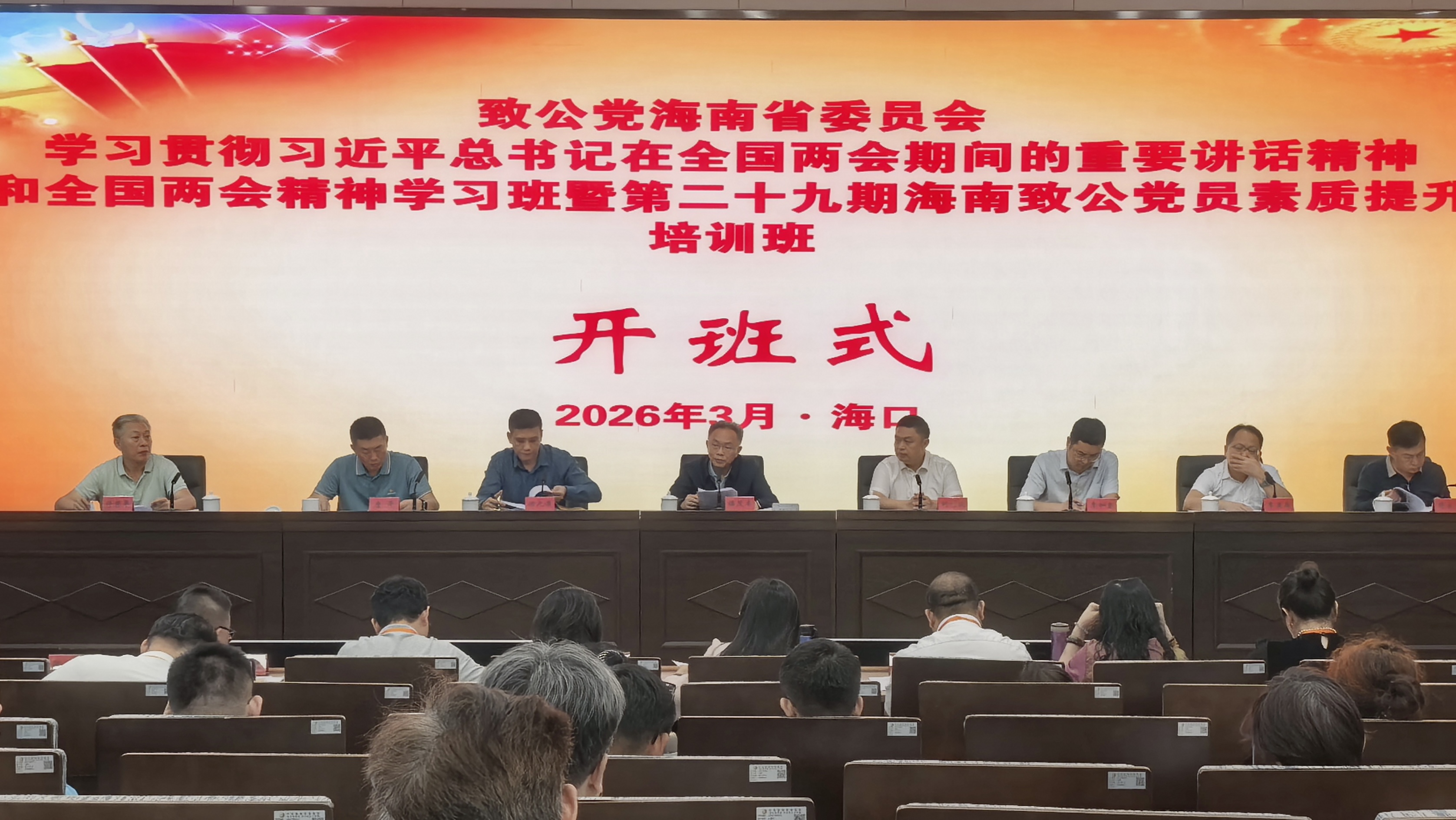 致公党海南省委会专职副主委李加奎,副主委唐泽、李孟森、许惠平、符永岸,秘书长郭翠珠出席开班式。
